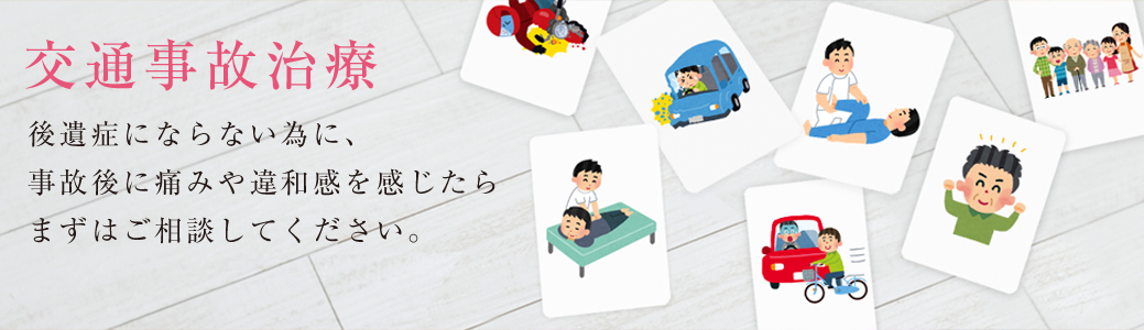 ぶつかって、その場では病院にいくほどでもなく大丈夫だと思っていても、後から首が重くなってムチウチ損傷が出てきたり、膝、肘の打撲など、痛みがでてくることも多いです。